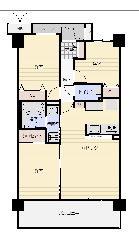 ・フローリング張替え・クロス張替え・建具一部新調・照明新調